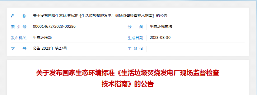 為了確保焚燒發電廠生產過程中人員的安全性及地球良好的生態環境,國家生態環境部頒布相關標準: